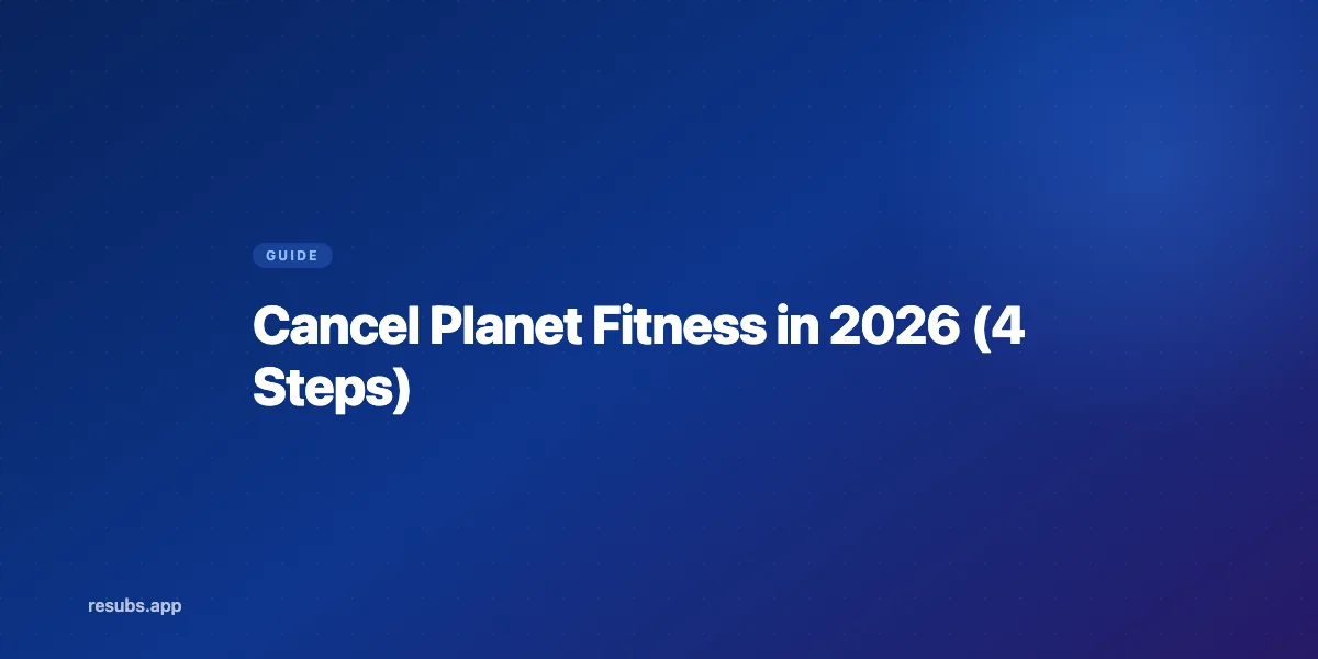 Avbokningsstegen på den här sidan är endast i informationssyfte och var korrekta från och med den senaste uppdateringen. Planet Fitness-klubbar ägs individuellt och drivs som franchiseavtal, så policyer, avgifter och procedurer kan variera beroende på plats. ReSubs är inte anslutet till Planet Fitness. För de senaste avbokningsinstruktionerna, kontakta din hemmaklubb direkt eller besök Planet Fitness FAQ. Om du upplever faktureringsproblem, kontakta din hemmaklubbschef eller din betalningsleverantör.